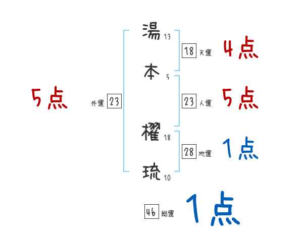 湯本櫂琉さんの画数の鑑定結果