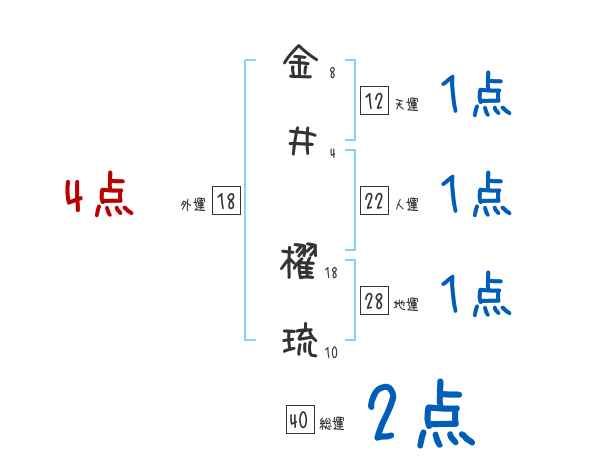 金井櫂琉さんの画数の鑑定結果