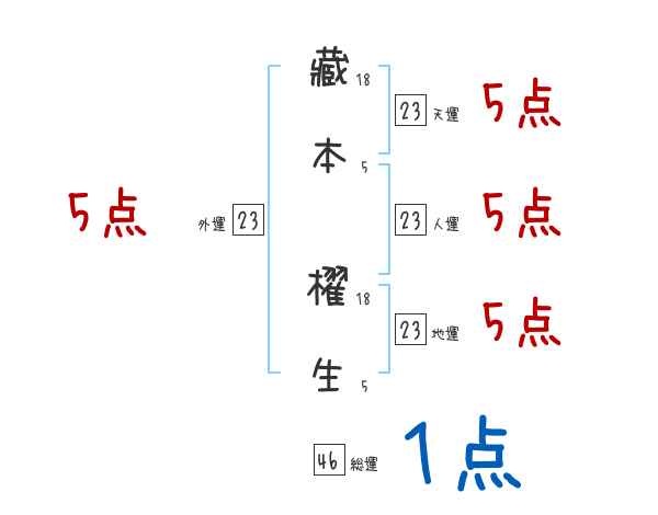 藏本櫂生さんの画数の鑑定結果