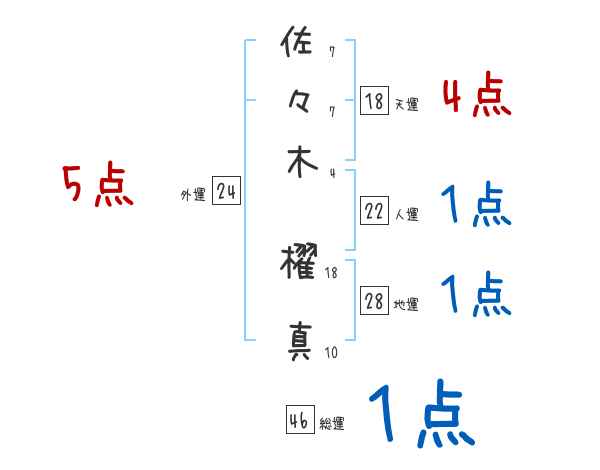 外運![]() | 佐々木櫂真さんの外運は24画の5つ星!家庭運が良く順調な人生。金運にも恵まれる。 生活面を象徴する運勢です。外部から受ける影響力を表し、結婚運、家庭運や職場、環境への順応性を表します。 |