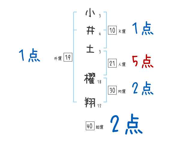 人運![]() | 小井土櫂翔さんの人運は21画の5つ星!統率力がある。独立し成功する。名誉を手に入れる。 性格や才能などを表す2番目に重要な運勢です。人間関係や協調性、社会的な成功に影響します。主に20歳から50歳ぐらいまでの中年期の運勢を表します。 |