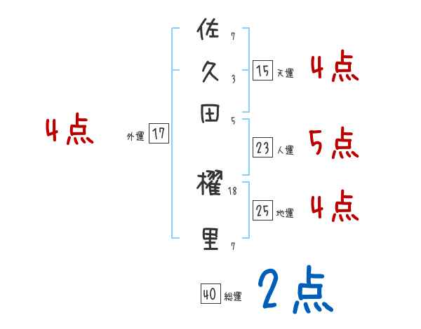 佐久田櫂里さんの画数の鑑定結果