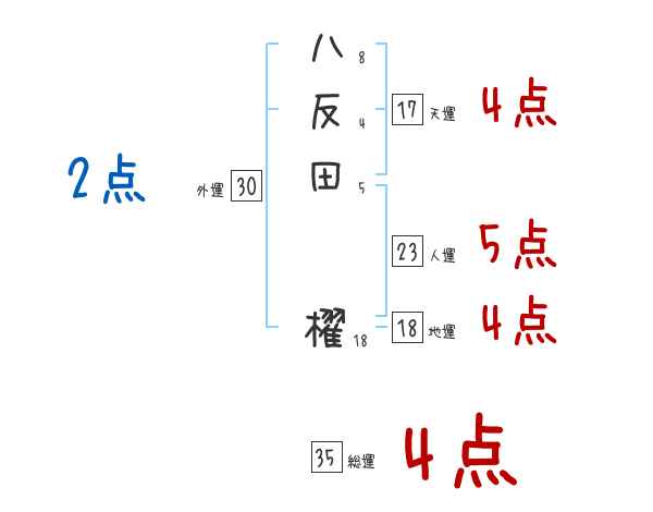 八反田櫂さんの画数の鑑定結果