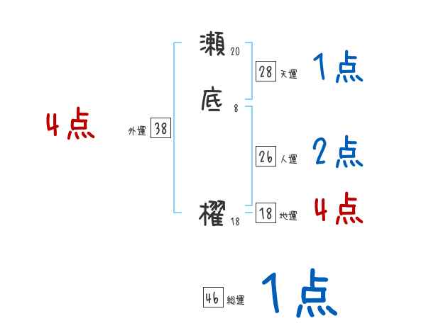 瀬底櫂さんの画数の鑑定結果