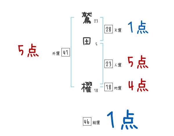 人運![]() | 鷲田櫂さんの人運は23画の5つ星!想像力に優れ活力がある。一代で成功し名誉を手に入れる。 性格や才能などを表す2番目に重要な運勢です。人間関係や協調性、社会的な成功に影響します。主に20歳から50歳ぐらいまでの中年期の運勢を表します。 |