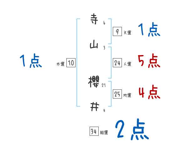 家系が持つ宿命的な運勢を表します。祖先から受け継いだ苗字ですので自分の力が及びません。家柄を象徴します。