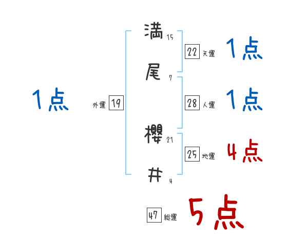 満尾櫻井さんの画数の鑑定結果
