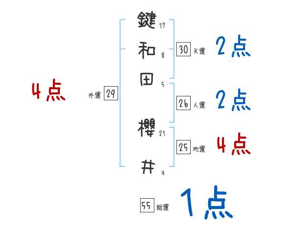 鍵和田櫻井さんの総運は55画の1つ星