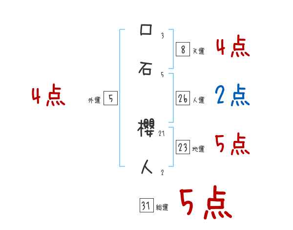 口石櫻人さんの画数の鑑定結果