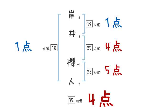 総運![]() | 岸井櫻人さんの総運は35画の4つ星!温厚な性格で感受性が高い。穏和な性格で人望が厚い。 あなたの人生を表す1番重要な運勢です。生涯を通じて影響する総合運となり、主に50歳以降の晩年期に影響を及ぼします。 |