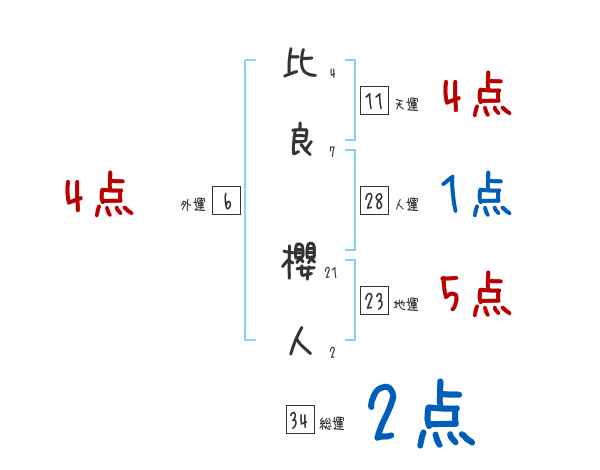 比良櫻人さんの画数の鑑定結果