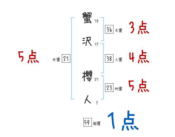 蟹沢櫻人さんの画数の鑑定結果