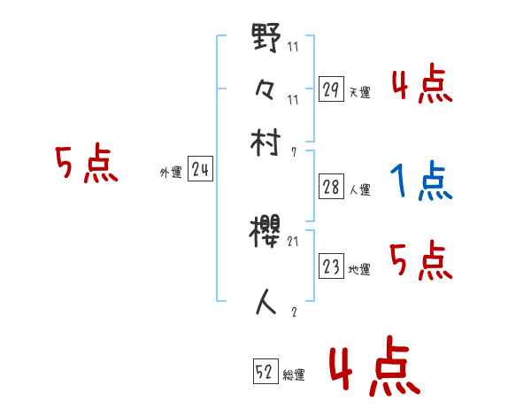 野々村櫻人さんの画数の鑑定結果