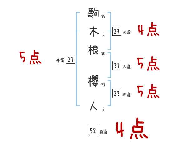 駒木根櫻人さんの画数の鑑定結果