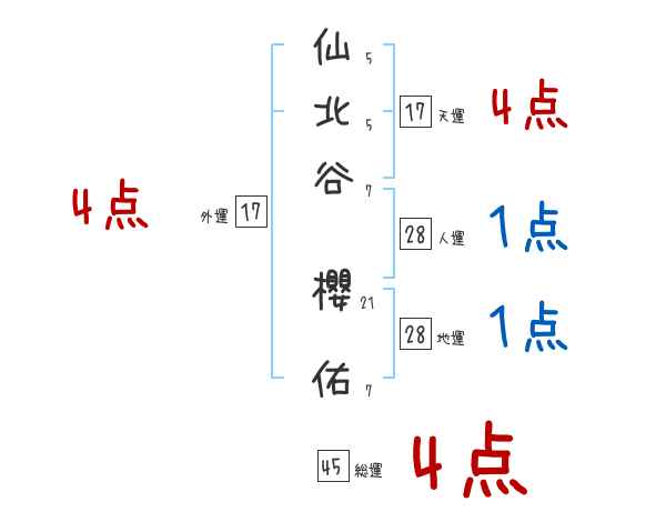 仙北谷櫻佑さんの画数の鑑定結果