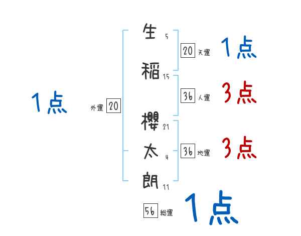 生稲櫻太朗さんの画数の鑑定結果