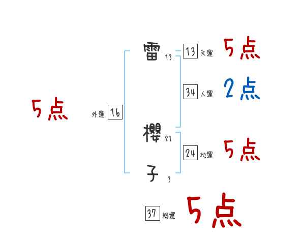 雷櫻子さんの画数の鑑定結果