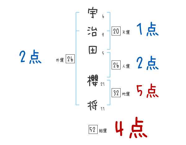 宇治田櫻将さんの画数の鑑定結果