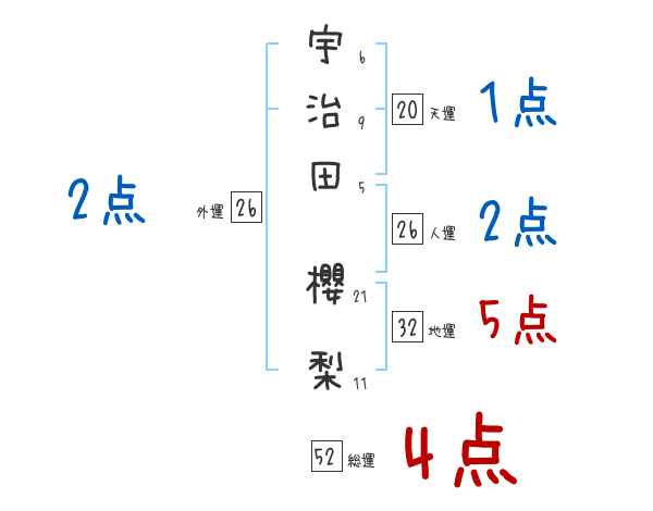 宇治田櫻梨さんの画数の鑑定結果