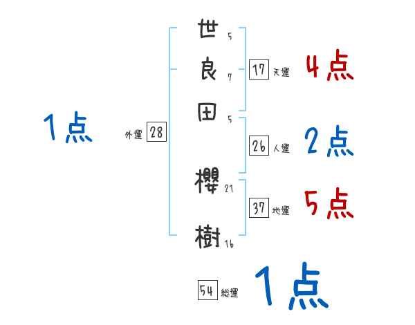 世良田櫻樹さんの画数の鑑定結果