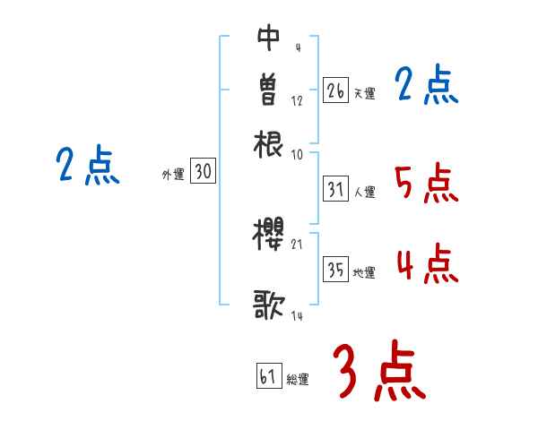 中曽根櫻歌さんの画数の鑑定結果