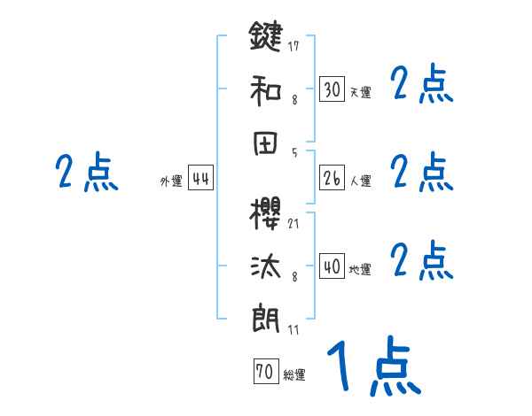 鍵和田櫻汰朗さんの画数の鑑定結果