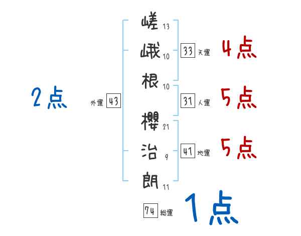 嵯峨根櫻治朗さんの画数の鑑定結果