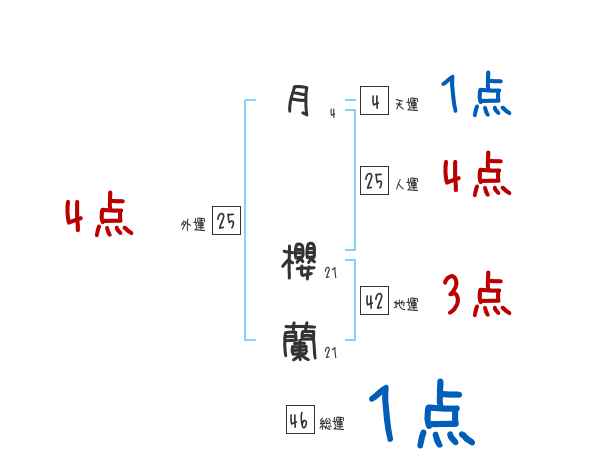 月櫻蘭さんの画数の鑑定結果