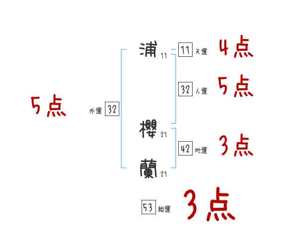 浦櫻蘭さんの画数の鑑定結果