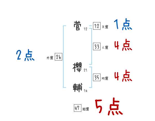 菅櫻輔さんの画数の鑑定結果