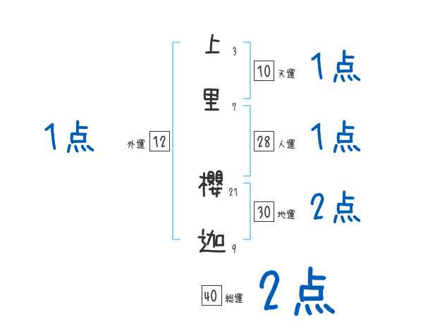 上里櫻迦さんの画数の鑑定結果