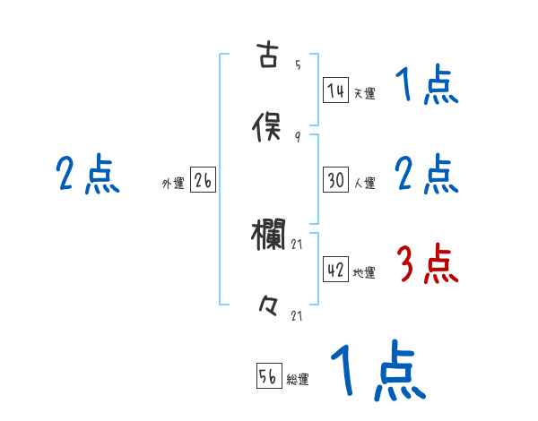 古俣欄々さんの画数の鑑定結果