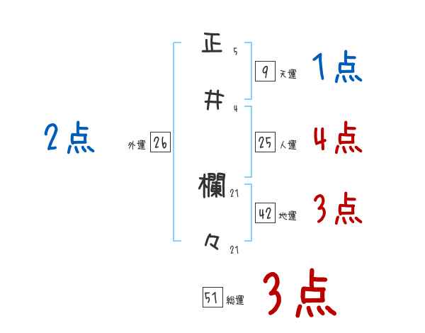 正井欄々さんの画数の鑑定結果