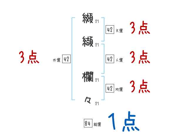 纐纈欄々さんの画数の鑑定結果