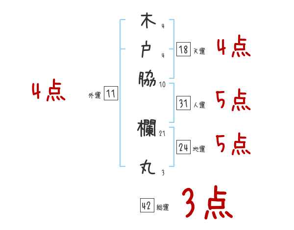 木戸脇欄丸さんの画数の鑑定結果