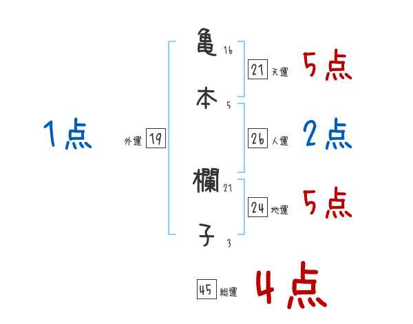 亀本欄子さんの画数の鑑定結果