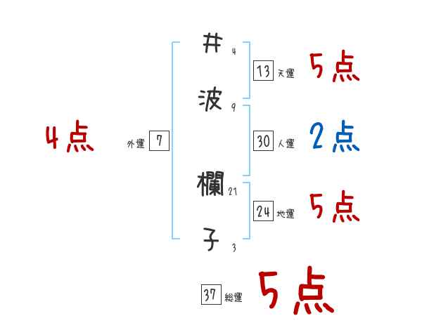 天運![]() | 井波欄子さんの天運は13画の5つ星!才能に恵まれ人気がある。名声を手に入れる。円満な人生。 家系が持つ宿命的な運勢を表します。祖先から受け継いだ苗字ですので自分の力が及びません。家柄を象徴します。 |