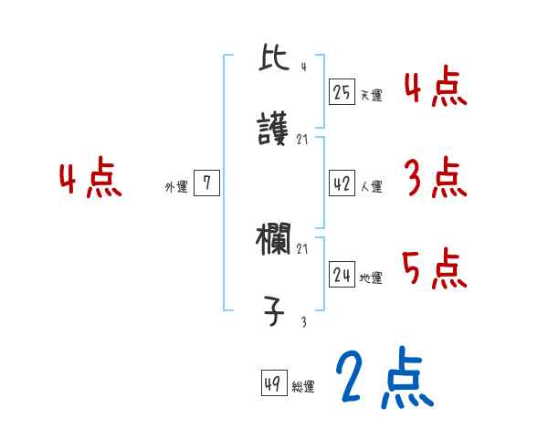比護欄子さんの画数の鑑定結果