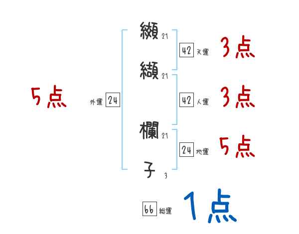 外運![]() | 纐纈欄子さんの外運は24画の5つ星!家庭運が良く順調な人生。金運にも恵まれる。 生活面を象徴する運勢です。外部から受ける影響力を表し、結婚運、家庭運や職場、環境への順応性を表します。 |
