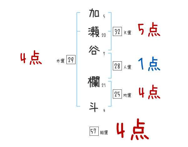 加瀬谷欄斗さんの画数の鑑定結果