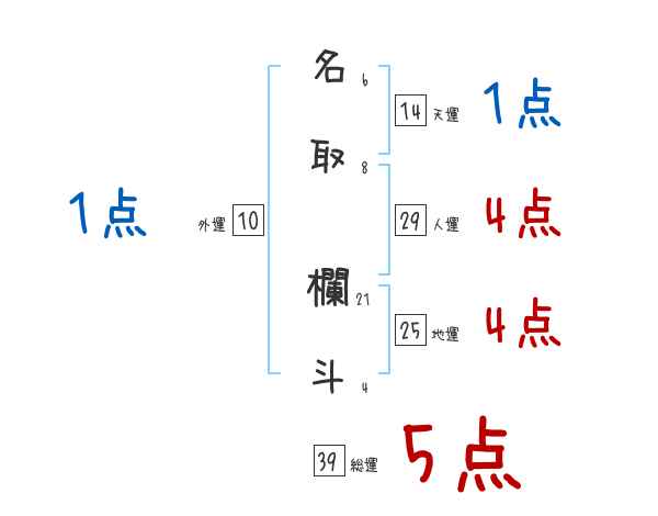 名取欄斗さんの画数の鑑定結果