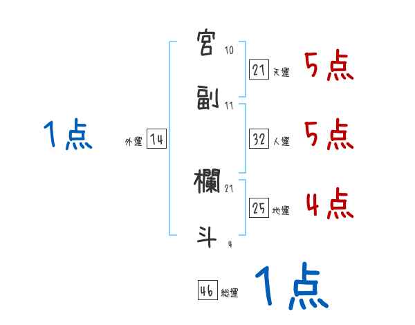 宮副欄斗さんの画数の鑑定結果