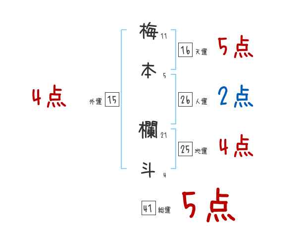 梅本欄斗さんの画数の鑑定結果