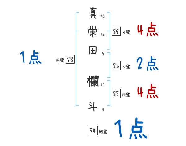 天運![]() | 真栄田欄斗さんの天運は29画の4つ星!完全主義で才能がある。厳格な心の持ち主。 家系が持つ宿命的な運勢を表します。祖先から受け継いだ苗字ですので自分の力が及びません。家柄を象徴します。 |