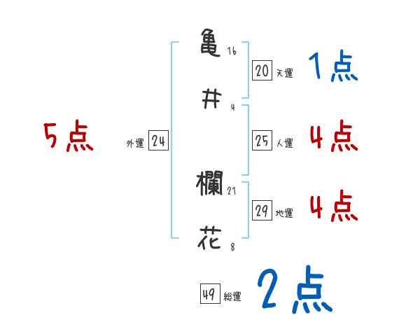 亀井欄花さんの画数の鑑定結果