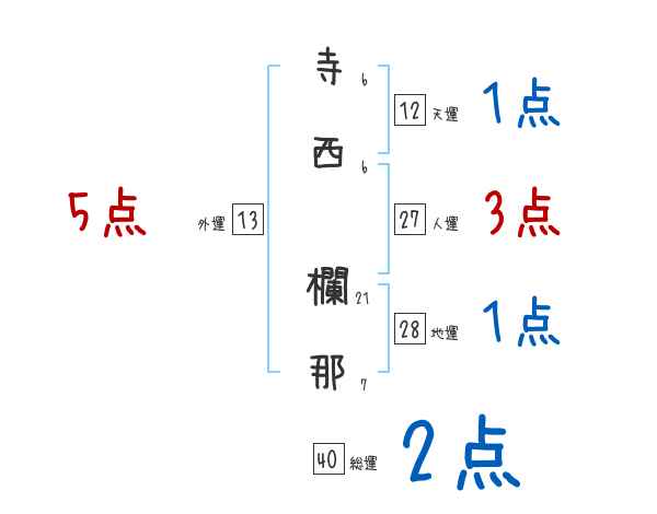 寺西欄那さんの画数の鑑定結果