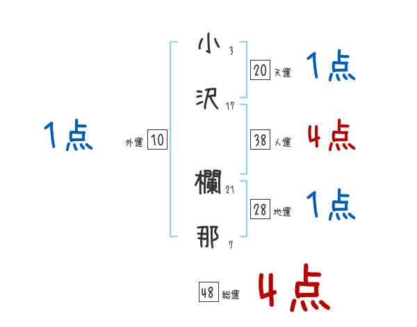 小沢欄那さんの画数の鑑定結果