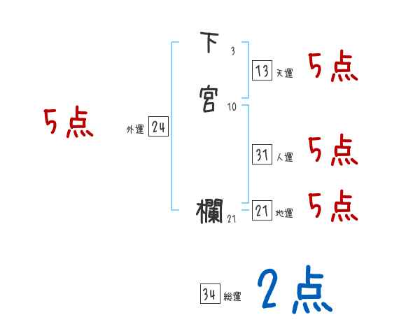 下宮欄さんの画数の鑑定結果