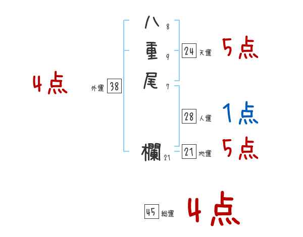 八重尾欄さんの画数の鑑定結果