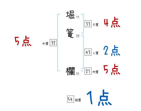 堀篭欄さんの画数の鑑定結果